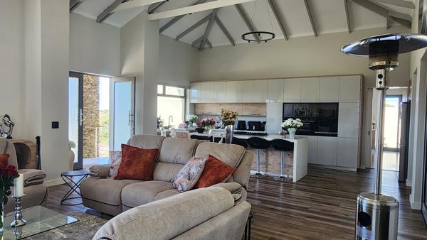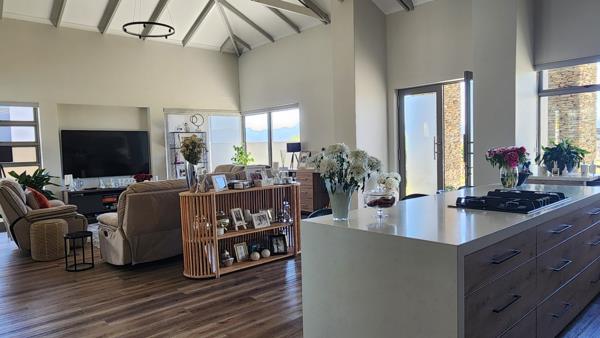 This modern home in the prestigious Oubaai Golf Estate perfectly blends style, comfort, and practicality, with a stunning swimming pool at its heart. The light-filled, open-plan layout flows effortlessly from the elegant kitchen to the spacious lounge, complete with a cosy wood-burning fireplace ideal for relaxed family living and entertaining. Featuring four generously sized bedrooms, including a luxurious master suite with a walk-in dressing area and beautifully appointed en-suite, the home showcases high-quality finishes and contemporary design throughout.