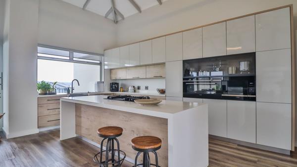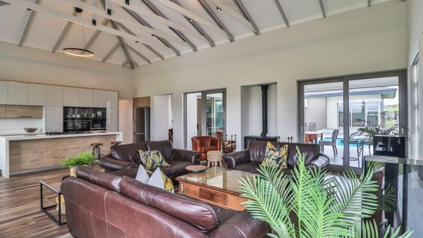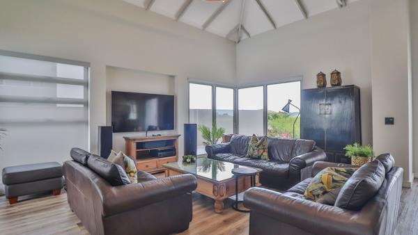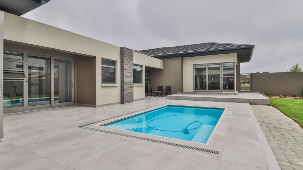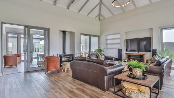 Equipped with an 8 kVA solar system and gas geysers, it offers energy-efficient living with modern sustainability in mind. Two spacious lounges invite relaxation, while an indoor-outdoor patio, complete with a fireplace and built-in braai, is perfect for year-round entertaining. This property embodies refined living in a serene and picturesque environment.