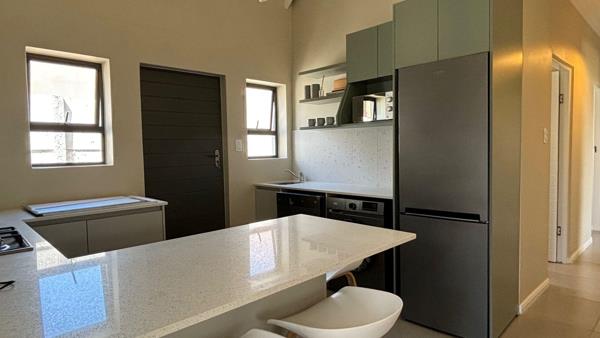 Open plan kitchen and lounge. The kitchen appliances fridge, stove & oven, microwave, dishwasher and washing machine are all included in the purchase price. Down the passage are the three bedrooms and two bathrooms. The main bedroom is en-suite and the other two bedrooms share the second bathroom.