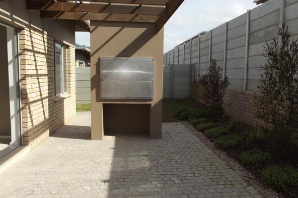 Highlights of the Property:3 Bedrooms:Main bedroom with an en-suite bathroom.2 Bathrooms:Modern design.Open-Plan Living Area:Flowing layout perfect for relaxation and entertaining.Double Garage:Ample space for parking and storage. Remote controlled access.Manageable Garden:Ideal for low-maintenance upkeep, with enough space to keep a pet.Patio with Built-in Braai:Perfect for entertaining.