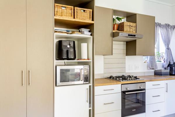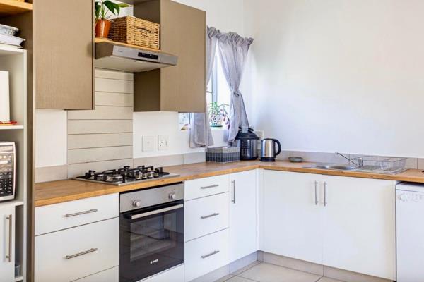 Inside, you will find modern finishes throughout, including a stylish kitchen fitted with a gas hob and plenty of cupboard space, designed for both function and elegance. The home is equipped with a gas geyser for energy efficiency and cost-effective living. The estate is fully enclosed with electric fencing and offers 24-hour security and a manned guardhouse, ensuring complete peace of mind.