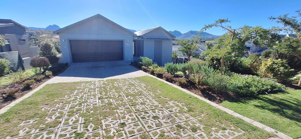 On the lower level, an airy open-plan layout seamlessly connects the dining area, TV lounge, and a charming kitchen, which includes a breakfast nook, a separate scullery, and a built-in gas fireplace that adds a cozy touch. Stacker doors open onto a stoep, ideal for enjoying morning coffee or hosting sunset gatherings in the private garden, where every view offers a breathtaking backdrop of the mountains.