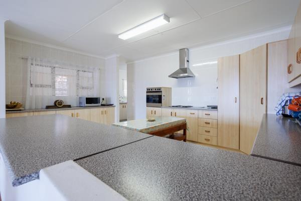 Kitchen is very spacious with many cupboards and a pantry cupboard, with space for a table and chairs in the kitchen. TV room is spacious with cupboards. Lounge/dining room is spacious. Study room. Scullery separate from the kitchen. Fridges run on the inverter. Three garages, and the inverter is located in the garage.