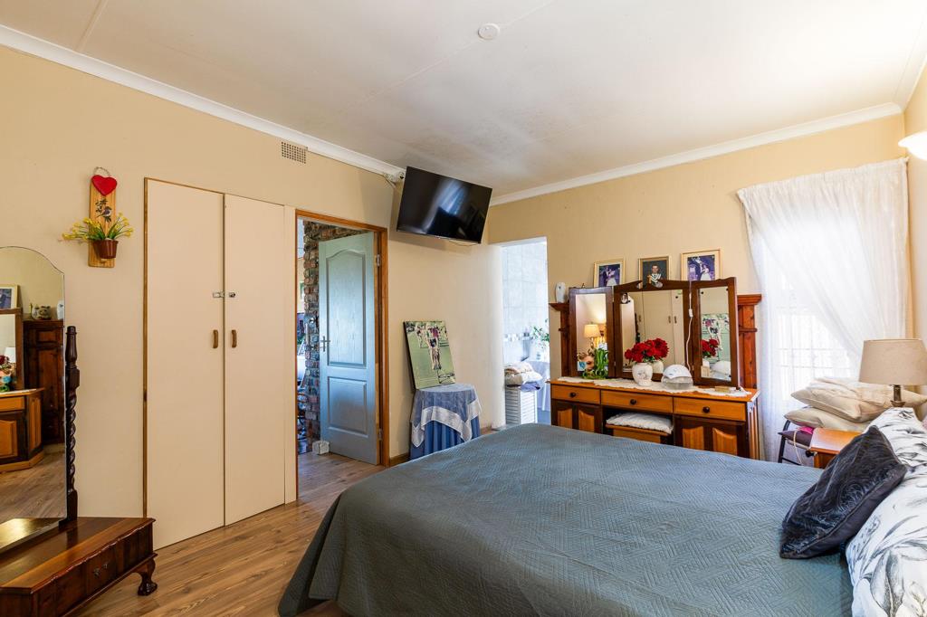 3 Bedrooms and 2 bathrooms plus an additional 1 bedroom flatlet. The house features a study, kitchen, dinning room, thatched room lapa with braai, boma and swimming pool. Ideal entertainment area! The main house is equipped with a 11kva solar system. Adjacent to the farm house there are 6 self contained flatlets, each with kitchenette, living room, bedroom and bathroom. With a combined rental income of about R30 000 per month.