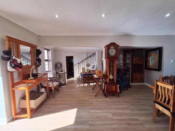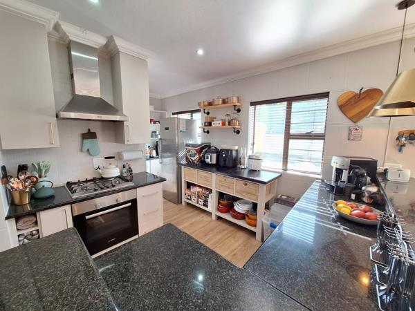 This residence offers a versatile array of living environments, including two distinct lounges and a dedicated dining room, providing ample space for both formal entertaining and relaxed family gatherings. One of the lounges exudes a charming rustic aesthetic, featuring planked ceilings, a built-in braai, and a cozy wood-burning stove, perfect for cooler evenings. Practical amenities such as a dedicated study, a laundry room, and additional storage solutions contribute to the home''s functional appeal. The accommodation comprises three generously proportioned bedrooms, with the master suite benefiting from a private en-suite bathroom, alongside an additional 1.5 well-appointed bathrooms, ensuring comfort and convenience for all occupants. The two double bedrooms upstairs share a full bathroom. A guest toilet is available on the ground floor for your guests.