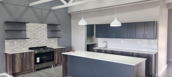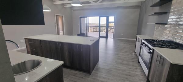 Spacious open plan living areas with large windows and sliding doors leading to a well-sized deck with built-in braai facilities, making good use of the lovely views. The kitchen features a centre island with a breakfast counter and a separate scullery/laundry room with an interleading door, providing direct access to the garage.