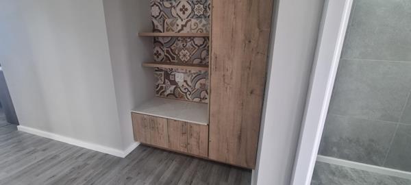 The 3 bedrooms all have built-in cupboards with laminated wood flooring. The master bedroom has sliding doors leading out onto the deck balcony and there is a full en-suite bathroom with double basins. A second bathroom with shower, basin and toilet services the other 2 bedrooms and there is also a guest toilet with a washbasin. The 2 bathrooms have tiled flooring and laminated wood throughout the rest of the home.
