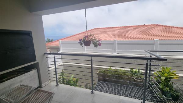 Glass stack doors open out onto a balcony which extends the living area and that features a built-in braai. The master bedroom has plenty of built-in cupboard space, a full en-suite bathroom and it opens out onto a small balcony from which the views can be enjoyed. An additional 2 bedrooms share a bathroom.