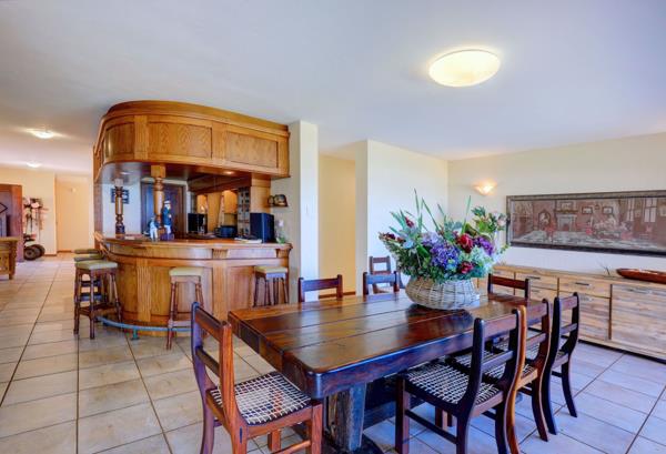 Upstairs one will find a sunny family living room and entertainment room with a built-in bar with sliding doors leading onto a balcony to enjoy a braai with friends and family overlooking the extraordinary views over the white water breakers towards Mossel Bay.