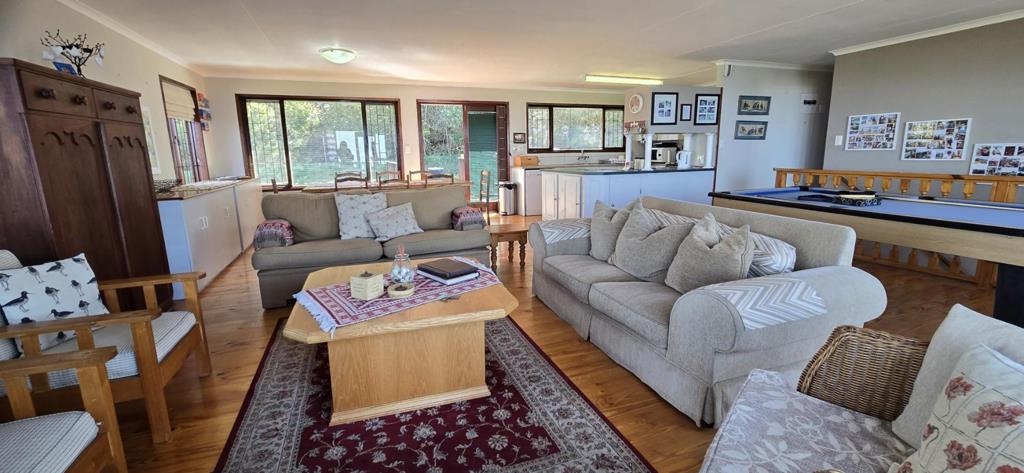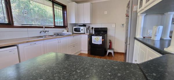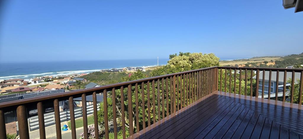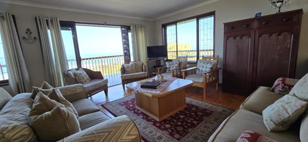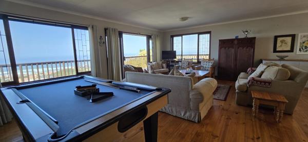 The open plan living areas are on the upper level and extend to the sea-facing deck from which the panoramic sea and Mossel Bay views can be enjoyed. The kitchen has scullery facilities and a bonus is a separate kitchen on the ground floor.