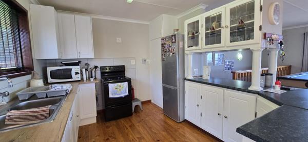 The home has wooden floooring throughout adding to the warmth of the home. A built-in braai ensures outdoor entertaining on lovely days. Extras include a double garage, an outdoor shower, Trellidoors and burglar bars.