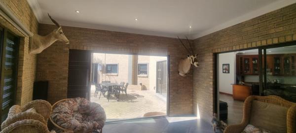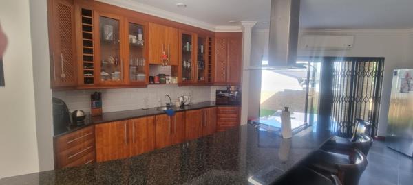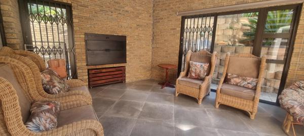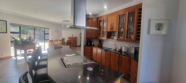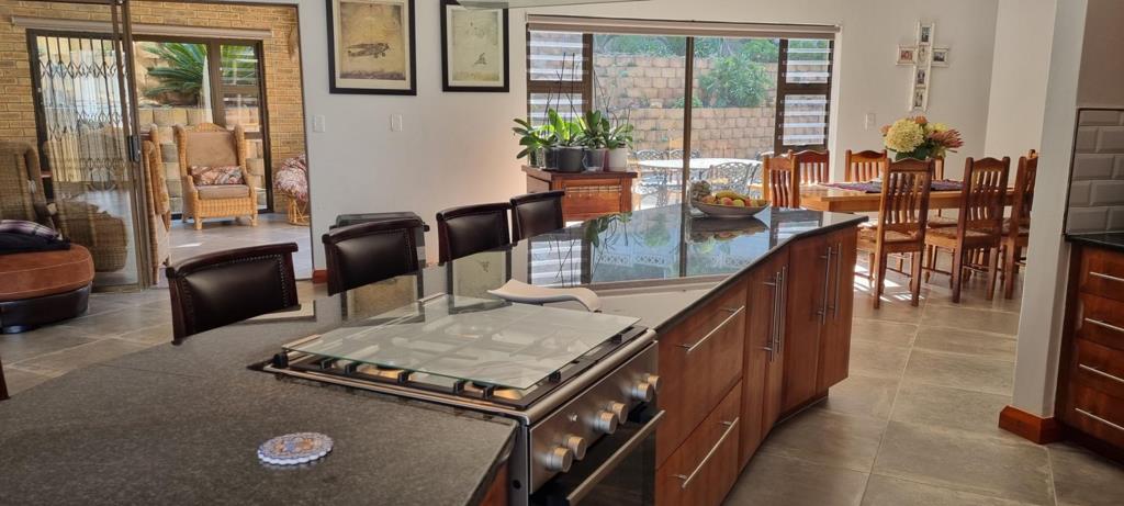 The home features spacious open plan living areas as well as a separate lounge. The one living area has a fireplace for the cool winter months. The 2 kitchens (1 on each level) have granite counter tops with ample cupboard space. There is a large separate scullery/laundry room as well as a study. The downstairs entertainment room with a built-in braai opens with stack doors out onto a paved patio area for outdoor entertaining. There is also an entertainment room on the upper level with braai facilities.