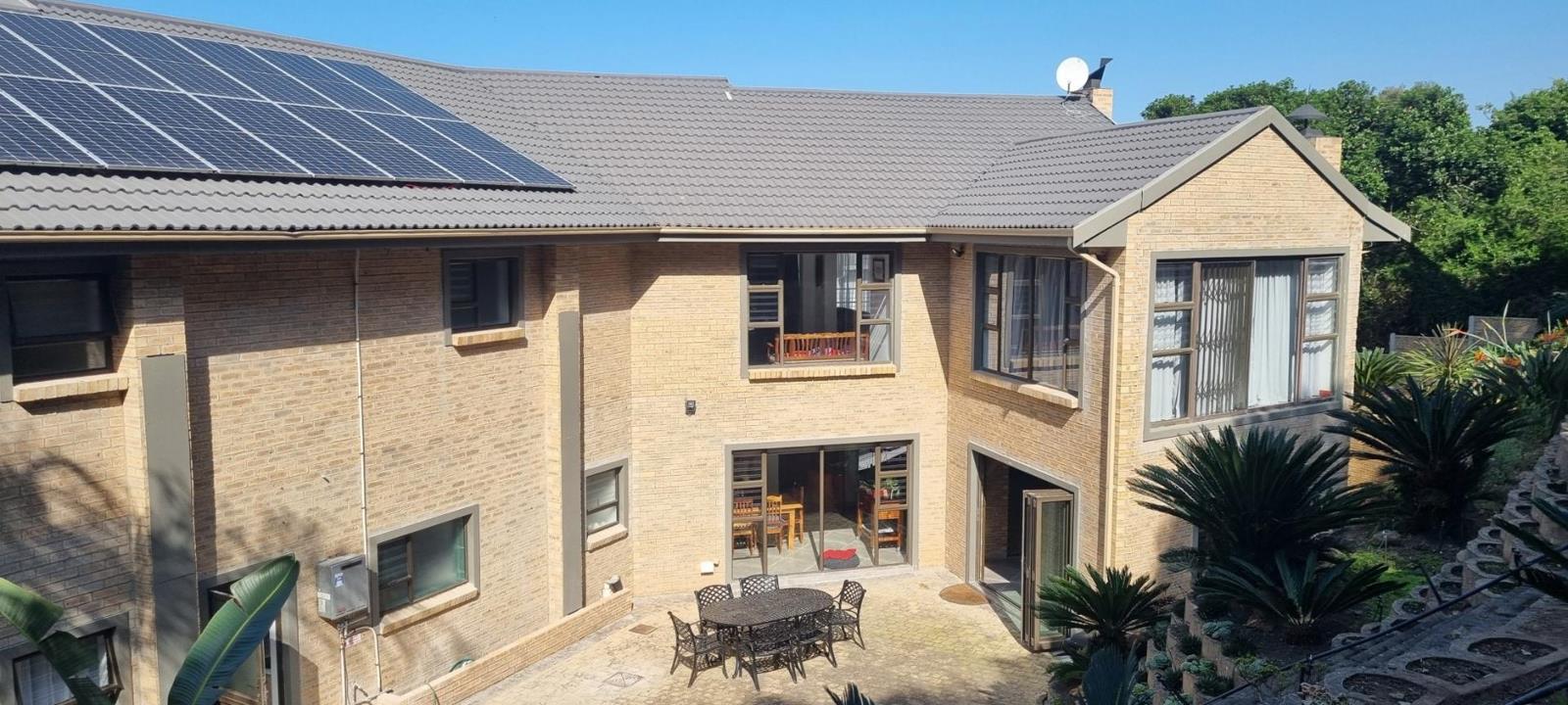 A paved driveway leads to a double garage which is tiled and also has built-in cupboards. There is a full 16 panel Victron inverter solar system, making the home energy efficient.