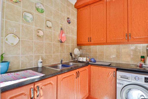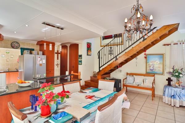 The kitchen with a separate scullery is open plan with the dining area and the lounge. Down the passage with plenty linen cupboards, you will find the main bedroom with an en-suite full bathroom and the second bedroom and the second full bathroom. Both these bedrooms, the kitchen and living areas get lovely winter sun during the cooler months. Going upstairs is the third bedroom with an en-suite bathroom and a private balcony. Currently it is used as a family room.