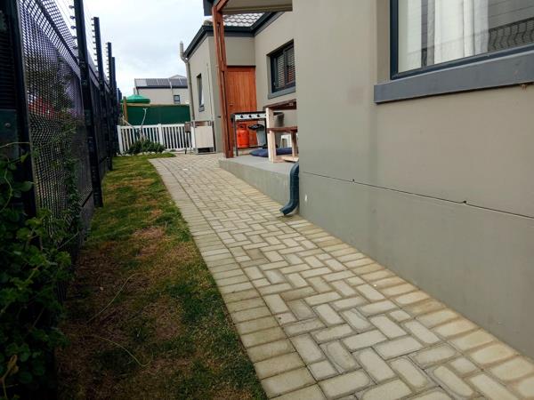 With 131m2 under roof, this north-facing house features an open-plan layout, modern finishes, and a light-filled living space with a built-in braai that flows effortlessly to a covered patio in the front and back perfect for entertaining or relaxing in your pet-friendly private garden.