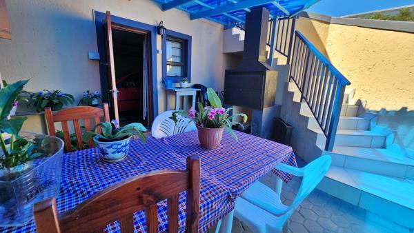 Upstairs, you''ll find three bedrooms, a large main bedroom with a private patio, two bathrooms, and a sunroom with mountain views. The study on this floor offers an extra sleeping arrangement opportunity. The property includes water backup with two rainwater tanks, an outdoor braai area, storage, and a spacious double garage.
