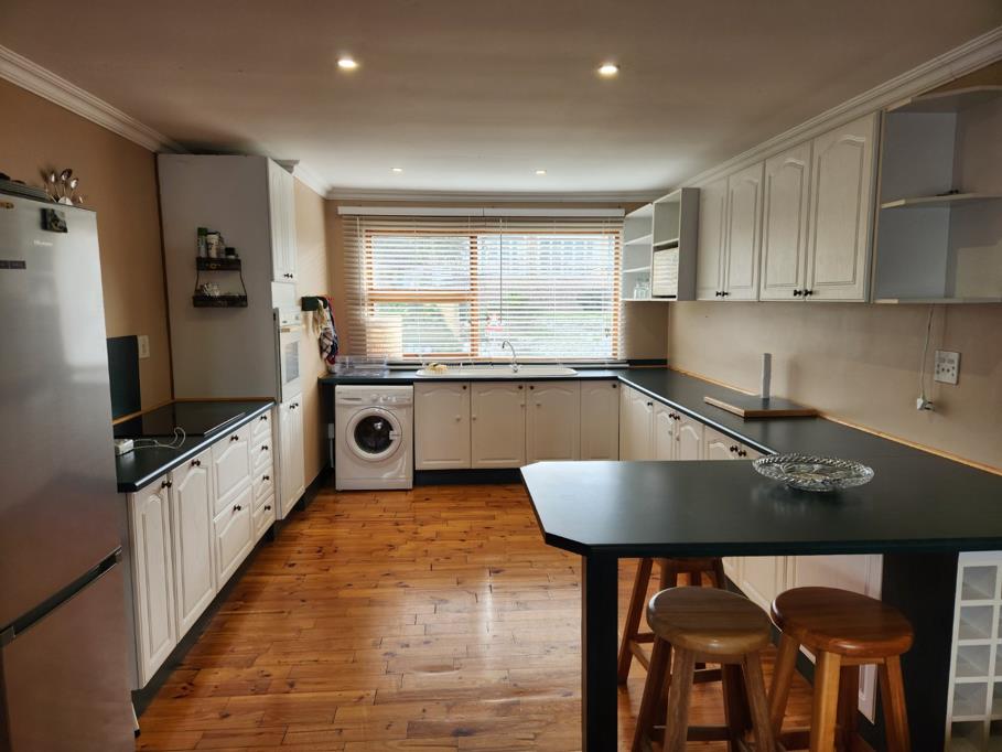 The spacious open-plan living area features large windows and sliding doors that showcase the stunning views. The kitchen is equipped with appliances and ample counter space, ideal for preparing delicious meals.