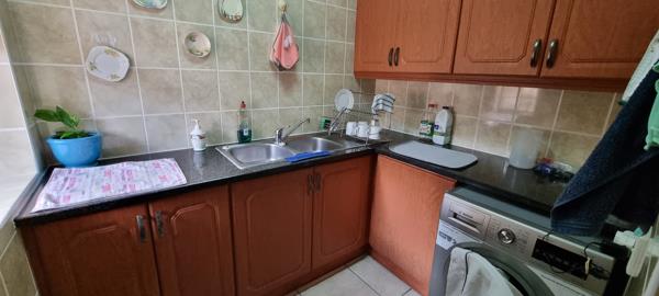 The secure entrance to the home opens into the spacious comfortable living areas, including a dining area and open plan kitchen. The living areas have large windows allowing natural light to fill the home. The kitchen is well equipped with ample built-in cupboards, with an under-counter oven and granite counter tops. There is an adjoining scullery/laundry room and leading off the kitchen is a small enclosed stoep with a wash basin.