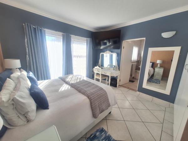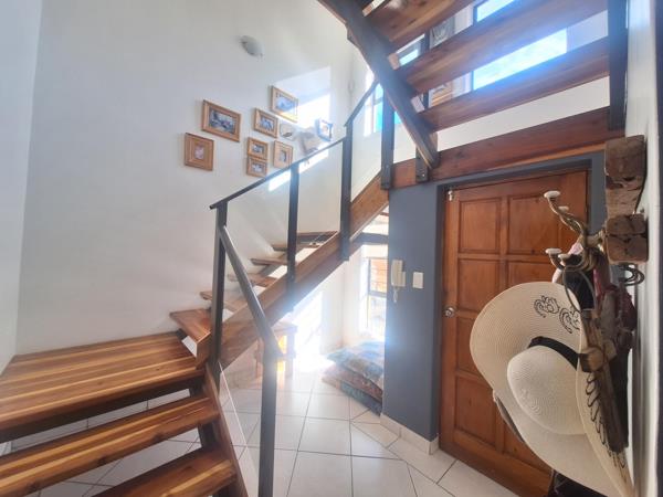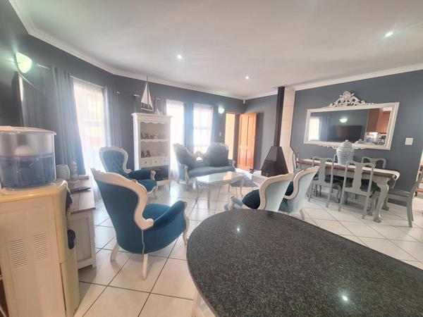 The upper level you will find 2 large bedrooms with a bathroom. TV room especially for children use. The inviting living area is enhanced by a cozy fireplace, creating a warm and welcoming atmosphere. Step out onto the balcony, where a braai area awaits, perfect for entertaining while enjoying the panoramic views that serve as a breathtaking backdrop.