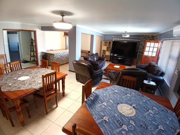 Spacious dining and lounge area with built-in braai
