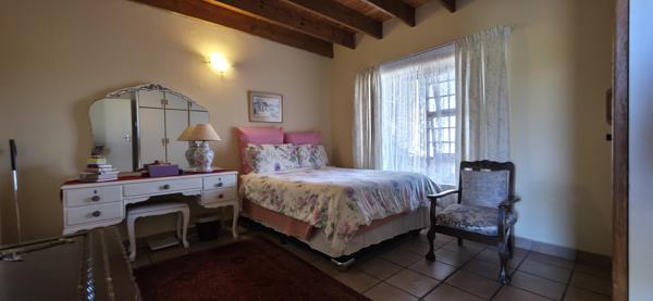 Inside, the home offers a spacious and thoughtful layout, starting with an open-plan kitchen and dining area complemented by a separate living room featuring a built-in braaiideal for entertaining. For relaxation, a dedicated sunroom provides a serene space for indoor plants. The accommodation includes three spacious bedrooms: a primary ground-floor suite with an en-suite bathroom, and two additional bedrooms upstairs that share a full bathroom. The upper level grants access to a large balcony, offering a perfect vantage point for the beautiful surrounding views.