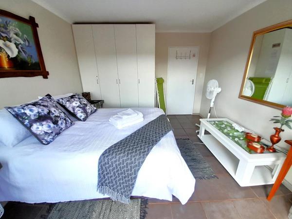 Extending along the side of the home, the patio provides private access to two separate sleeping units, each thoughtfully designed to ensure comfort and privacy, a highly desirable feature for short-term accommodation. Unit One features a spacious, upmarket bedroom complemented by a beautifully finished, generous bathroom.