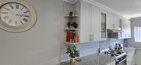 Secure parking is ensured with a double garage which has an automated door, is tiled and has a ceiling as well as shelves and built-in cupboards. Paving surrounding the home offers ample extra parking space. There is also a large storeroom. The property is eco-friendly with solar panels, a Geyserwise solar geyser, with a back-up electric geyser and a watertank. The inverter system ensures that there is always electricity in the home and stay connected with fibre connectivity.
