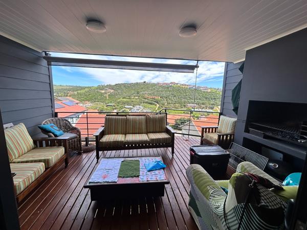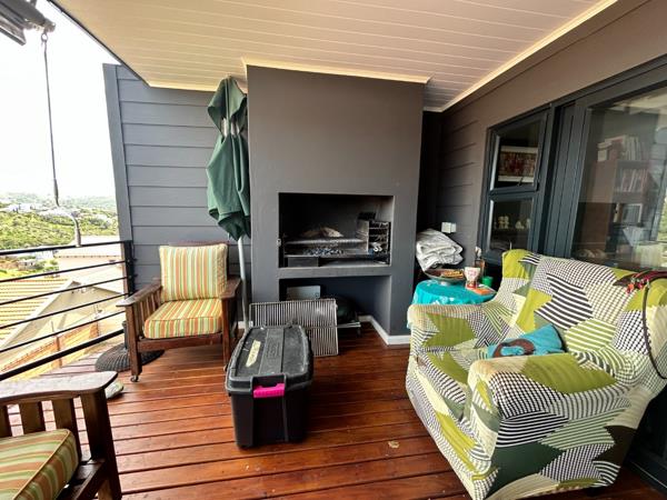 The well-designed open-plan living area flows seamlessly onto a patio with a built-in braai - ideal for entertaining while enjoying the lovely mountain scenery.