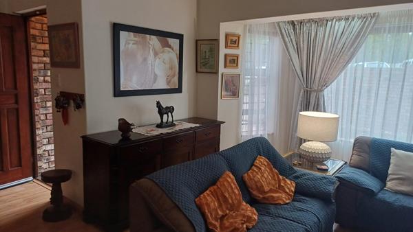 Open-plan home with a spacious living arealarge enough to accommodate a 10-seater dining table. A cozy fireplace adds warmth on cold winter days, while the braai room opens with sliding doors onto a well-established garden.