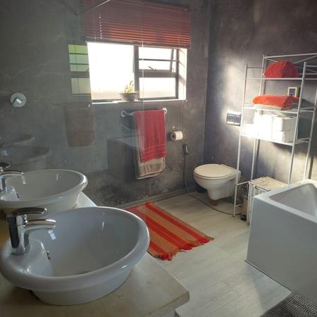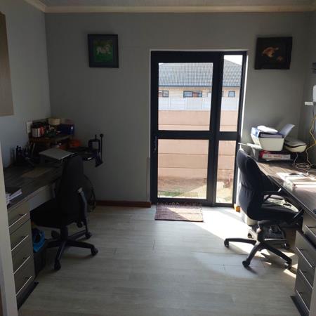 An Private wing offers a space for a double office, 1 bedroom with separate bathroom. A luxurious main suite boasting a walk-in closet and full en-suite bathroom at the back of the home provides additional privacy for yourself or quest. 1 Bedroom with its own bathroom to the left of the stairs.
