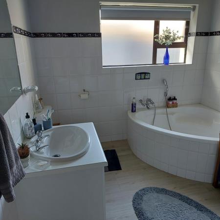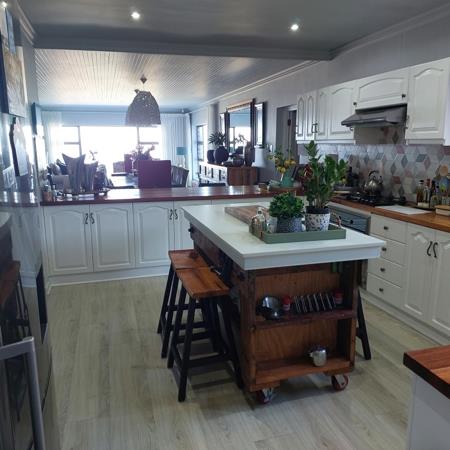 The living areas open onto a very large wooden deck that will take you to the breathtaking ocean views and Mossel Bay in the distance. A splash pool, and seated outdoor areas is ideal for enjoying sunset gatherings, outdoor dining or just simply for relaxing.