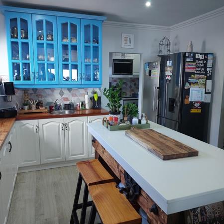 The open-plan living and dining areas was planned seamlessly so that it connects with the kitchen, which is equipped with a separate scullery and laundry area. The indoor built-in braai will make all family gatherings memorable no matter the weather.