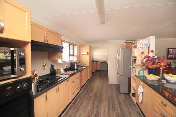 The heart of the home is its inviting open-plan living space, seamlessly connecting to a large, well-equipped kitchen with ample storage and a separate sculleryperfect for keeping daily tasks tucked away.