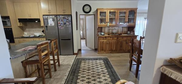 An extra living area leads to an open entertainment braai at the back with enough privacy, beautiful garden and easy access to a beautiful open plan kitchen with separate scullery.
