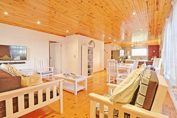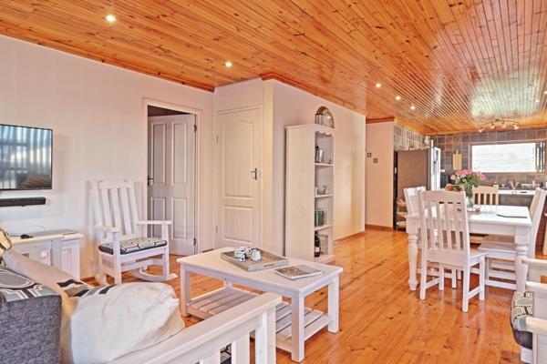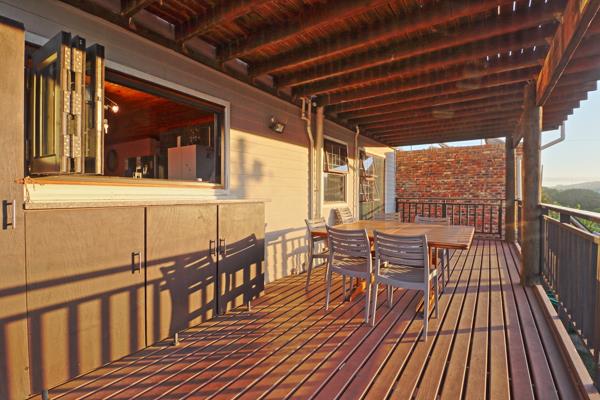 Soos jy nader stap aan die huis sal jy dadelik opmerk dat daar twee voordeure is, een onder en een bo. Bo en onder is ''n spielbeeld van mekaar en die uitsig op die dek is net so stunning! Die huis het groot slaapkamers en die pragtigste houtvloere en -plafonne. Die twee badkamers is volledig met bad en stort en baie ruim. Leefareas is oopplan en baie ruim met die kombuis wat ook oopplan is met die leefarea.