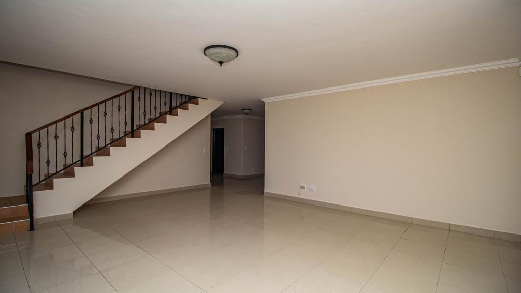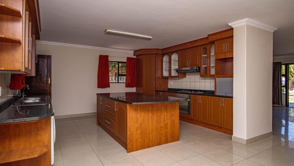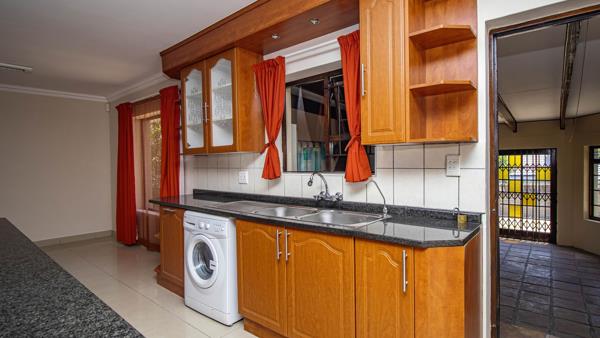 The spacious lounge and dining area flow effortlessly together, while the beautifully designed kitchen features granite countertops, ample cupboard space, a gas hob, and an electric oven perfect for the modern cook. From the kitchen area, you walk into a separate entertainment room with a built-in braai, ideal for hosting family and friends.