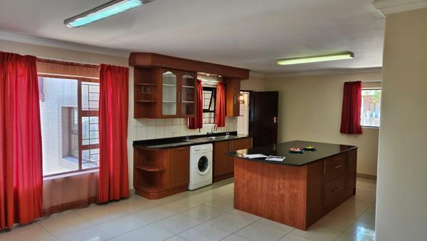 The interior is designed for flexibility and large-scale living. The ground floor showcases an, open-plan layout integrating the living, dining, and kitchen areas, which extends naturally into a braai room. This level thoughtfully includes a private guest suite (one bedroom with an on-suite bathroom) and a second separate bathroom. Practical features are completed by an oversized garage which incorporates both a workshop and substantial storage space.