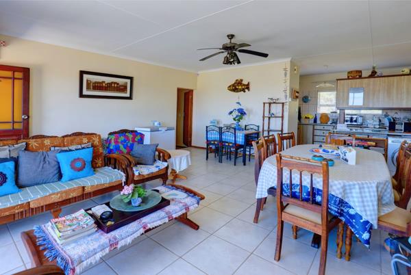 Sea Views and carefree living.. Nestled within the tranquil confines of a cul-de-sac in Tergniet, this expansive three-bedroom home offers breathtaking views of the sea. Ascend the easily accessible stairs to find the main entrance, leading to a welcoming patio that overlooks the majestic coastline of Mossel Bay. Inside, the spacious main living area surprises with its open-plan design, perfect for relaxation and entertainment.