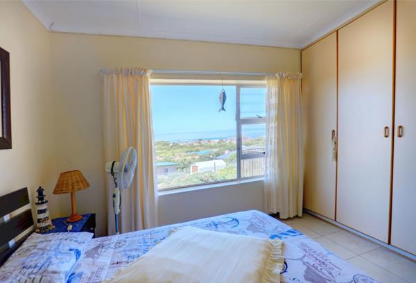 The residence boasts three bedrooms, two of which provide captivating vistas of the sea, and two bathrooms, one of which is an en-suite for the master bedroom. Ample built-in cupboards ensure ample storage for personal items and clothing.