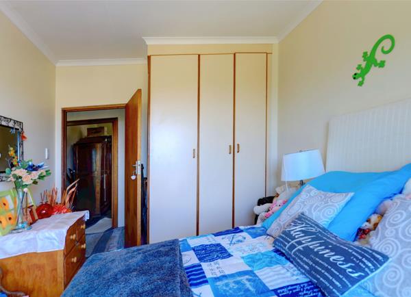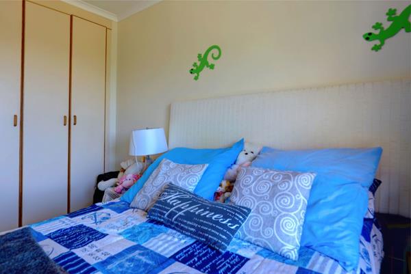The home features three bedrooms, with two offering captivating sea views, and two bathrooms, including an en-suite for the master bedroom. Ample built-in cupboards ensure generous storage for clothing and personal items.