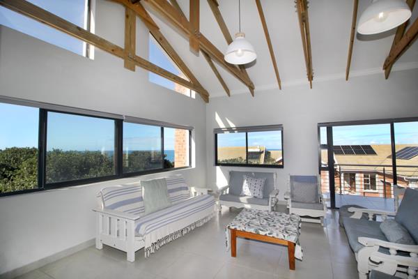 From your grand entrance you walk to the first floor of the home were you are welcomed in the spacious, open-plan living area which boasts a built-in braai and all round balconies with the most amazing views. There is a lovely ocean area at the top of the entrance that a be perfect for a ocean view office space or sunroom.