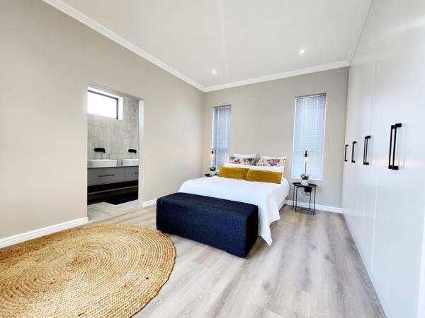 Price starting from: R3 285 600, All costs included! Presenting a stunning, bespoke home design, ready to be built on a stand of your choice in a sought-after development in Tergniet. This luxurious home is tailored for modern living, with expansive open-plan living areas that create an inviting, airy atmosphere. The modern kitchen is a chef''s dream, featuring a separate scullery for added convenience and clutter-free cooking.