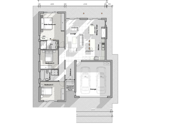 This elegant home design is crafted for luxury living, featuring expansive open-plan living areas that flow seamlessly into one another, creating a spacious and welcoming atmosphere. The modern kitchen is complemented by a separate scullery, perfect for keeping the home organized and functional.