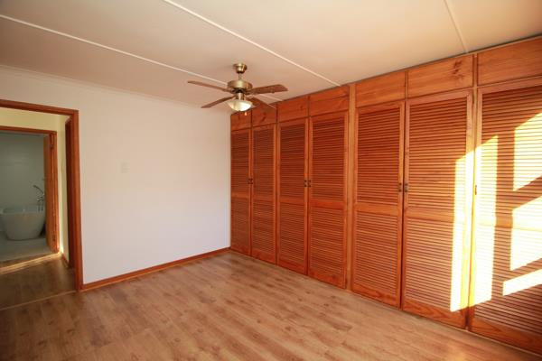The ground floor welcomes you with an open-plan design featuring ample space for a dining room and a family lounge, creating the perfect setting for quality time with family or guests. The main bedroom is a private sanctuary, complete with a walk-in cupboard and a modern en-suite bathroom equipped with a bath, basin, and toilet. A convenient linen cupboard adds extra storage space.