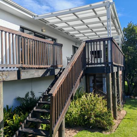 stretching along the entire front of the house. The covered deck leading off the lounge is also your braai and
