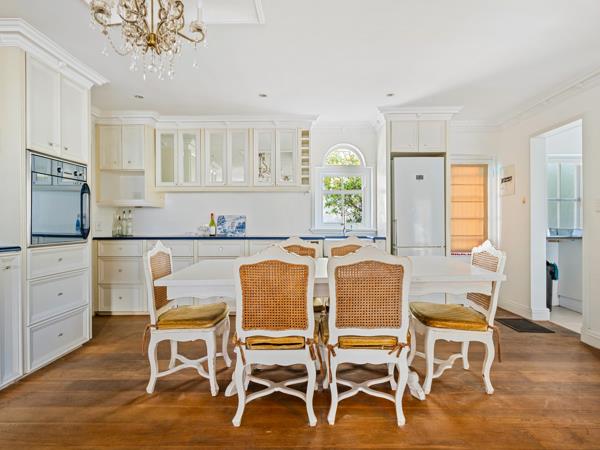 The double garage has auto doors. The garden is level & has mature trees & there is a magnificent coral tree on the pavement outside the house.