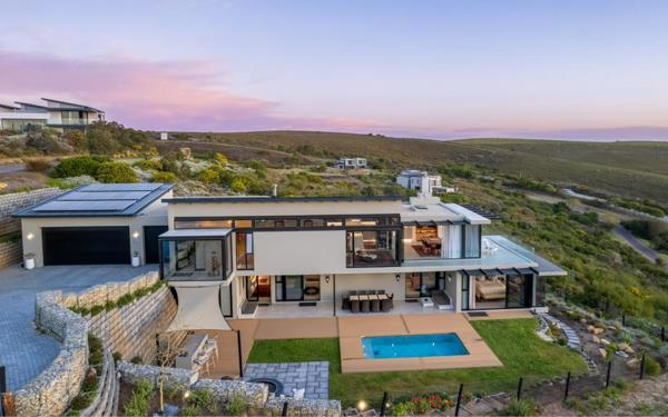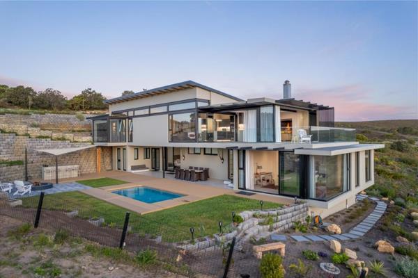 Set high up on the hill in exclusive 48 Ha Fernwood Private Estates front row, this forever ube-mod north-west facing home guarantees you uninterrupted panoramic views of the iconic Knysna Lagoon and majestic Outeniqua Mountains the dramatic sunsets here are like no other. The perimeter is fully enclosed with electric fencing and security for exclusive access by homeowners to generate one-time codes to visitors.