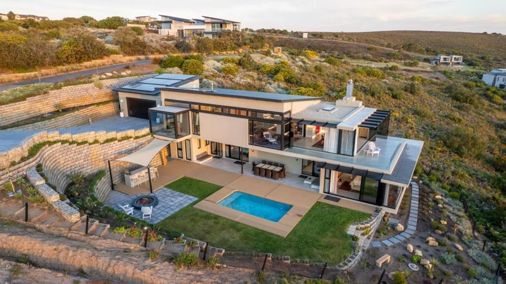 A superb entertainers home with big heart, memories are made here. Welcoming and inviting. Seamless glass stack away doors, corner to corner open the entire room, merging with nature, out and onto spectacular views. The seamless floor plan integrates the luxury lounge, large diner, sleek custom-designed kitchen with an amazing and inviting entertainment room with a country style firebraai place, a versatile space designed for social gatherings, shared meals that blends comfort, style, and the joy of the South African braai tradition. Sliding doors close this area off to living areas if needed.