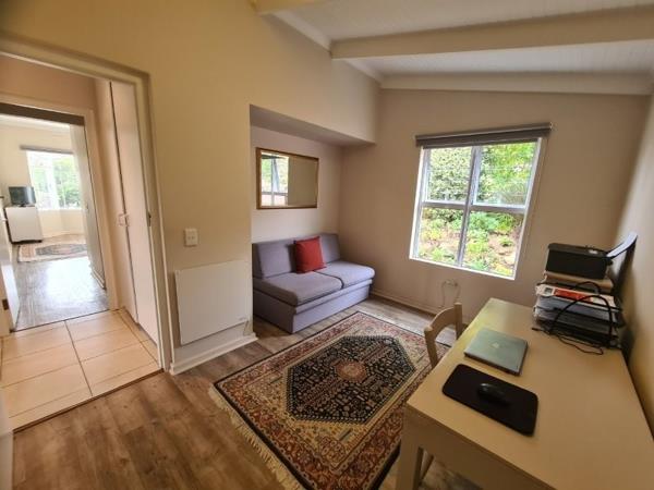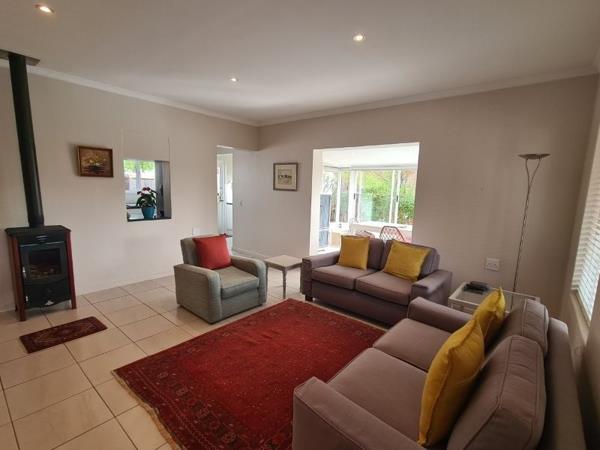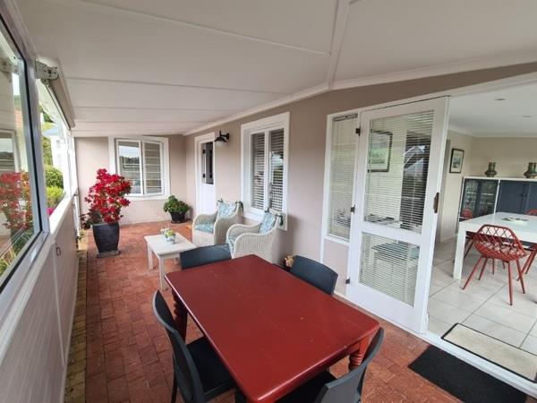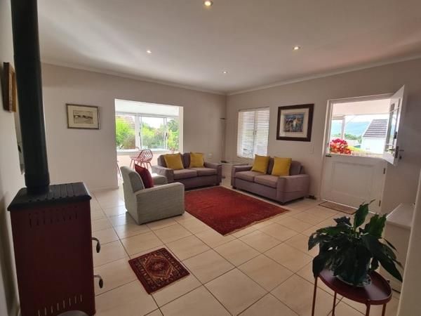 Discover this charming 2-bedroom, 2-bathroom home nestled within a secure, gated community in the sought-after Hunters Home suburb of Knysna. Boasting attractive curb appeal, the single-story residence features a welcoming light-colored exterior, a distinctive bay window, and a private covered veranda, all set within a mature, well-landscaped garden. Inside, the spacious lounge offers abundant natural light, and a cozy wood-burning fire place, while large sliding doors seamlessly link the indoor dining space to a delightful covered outdoor patio.
