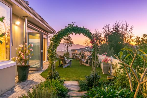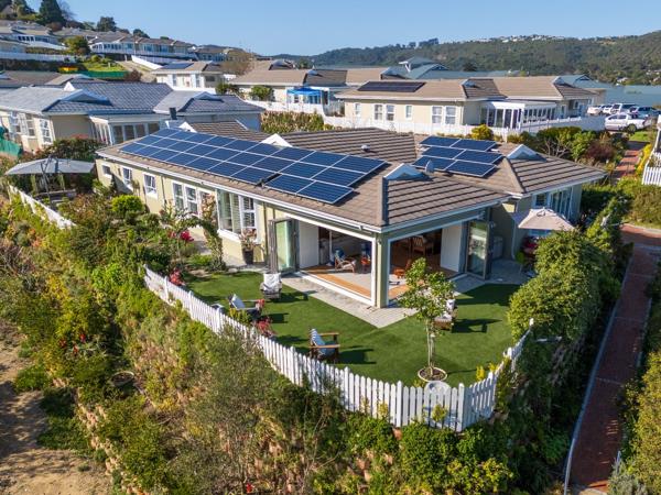 Accessed via a manned security entrance with security cameras and located in a quieter location within the Estate facing North/West for those Garden Route sunsets and warm outdoor living. Double garage plus covered parking. The garden has the ultimate outdoor entertainment areas from the gorgeous landscaped garden with Avo, lemon, lime, fig, apricot and pomegranate trees to free water from the underground water storage. Fully irrigated with off-the-grid-living from 37 solar panels, 3 inverters and 3 batteries. Plus a heat pump system.